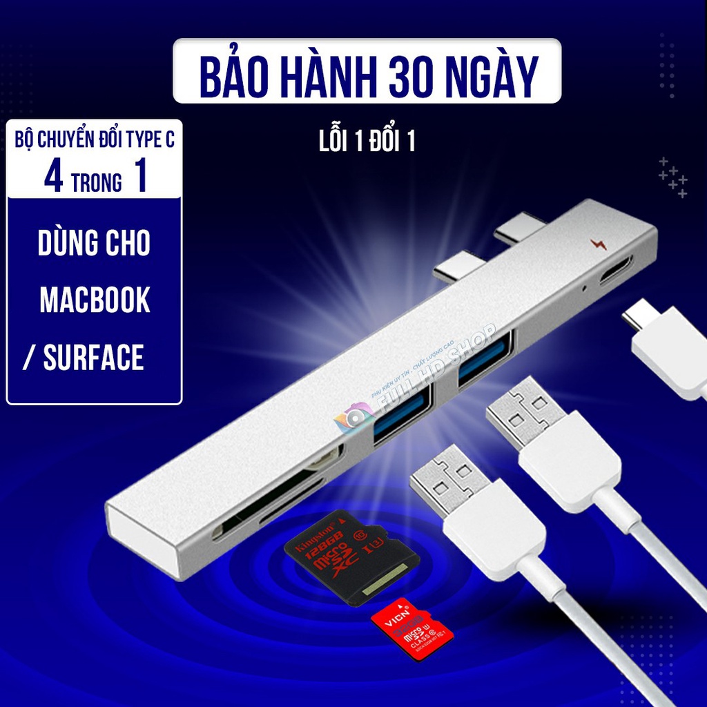 Cổng Chuyển Đổi Type C Sang USB/Đầu Đọc Thẻ Cho Macbook/Surface Phụ Kiện Macbook Chia Cổng USB 4 trong 1 Mã HD18