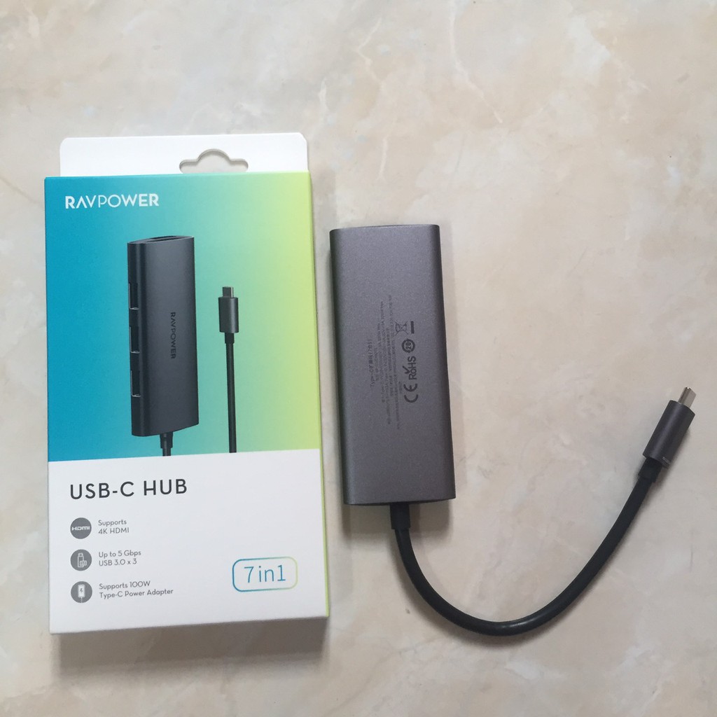 Cổng Chuyển RAVPower 7 in 1 USB-C Hub cho Mac.book, PC & Devices (RP-CUCN001))