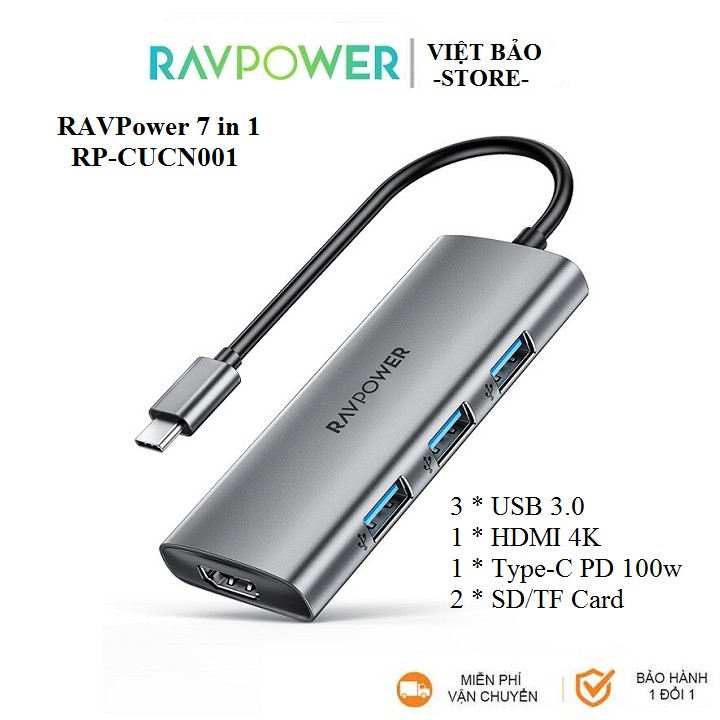 Cổng Chuyển Hub 7 in 1 RAVPower cho MB, PC & Devices, (RP-CUCN001)