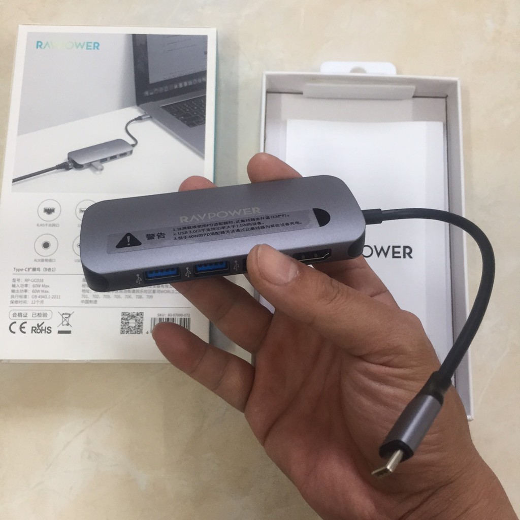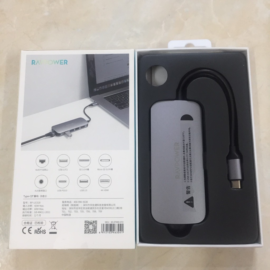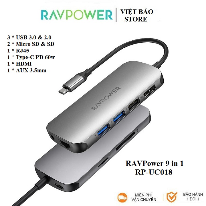 Máy tính & Laptop > Phụ Kiện Máy Tính > Bộ chia cổng USB & Đọc thẻ nhớ || Cổng Chuyển Hub 9 in 1 RAVPower cho MB, PC & Devices (RP-UC018)Còn hàng