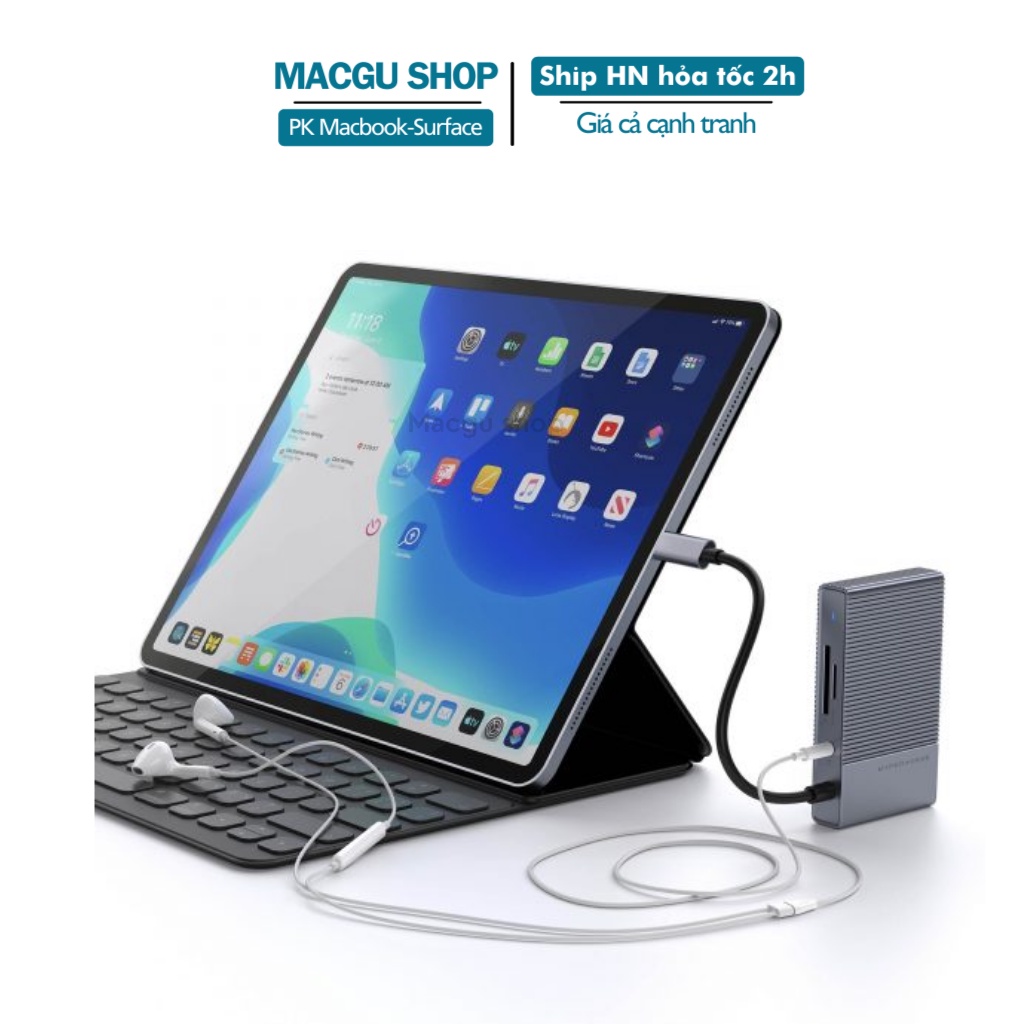 Biến một cổng USB-C duy nhất trên bất kỳ Macbook/Laptop/Máy tính bảng hoặc thiết bị di động nào thành bộ chuyển đổi đa cổng USB-C với 6 cổng: HDMI 4K60Hz, USB-A 10Gbps, MicroSD / SD UHS-II 312MB / s, USB-C Power Delivery 100W và Giắc cắm âm thanh 3,5 mm.