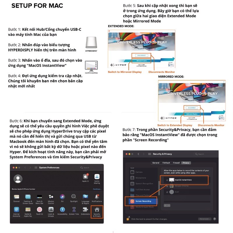 Cổng Chuyển/Hub USB-C Hyperdrive Dual 4K HDMI 10in1 (2 màn hình) Chuyên Dụng Cho Macbook Chip M1Cuối tháng 8/2021, HYPER chính thức ứng dụng thành công công nghệ trình chiếu của Silicon Motion’s InstantView (SMI’s) trên chiếc USB-C Hub để tạo ra sự kết nối 2 màn hình HDMI với độ hiện thị và tần số là 4K60hz và DP Alt-Mode 4K30Hz trong khi vẫn có quyền truy cập vào 10 cổng thiết yếu, bao gồm USB-C, HDMI, USB-A và nhiều cổng khác với tên gọi HYPERDRIVE DUAL 4K HDMI 10-IN-1 USB-C HUB FOR M1 MACBOOK (HDM1H). Tận hưởng việc truyền ảnh nhanh chóng, sạc nhanh thiết bị của bạn và mở rộng đến 2 màn hình HDMI, tất cả mà không cần phải tải xuống các trình điều khiển rườm rà. Và, nó hoàn toàn tương thích với các thiết bị MacBook Air / Pro (M1 & được hỗ trợ bởi Intel), thiết bị Windows PC cũng như thiết bị Chromebook.