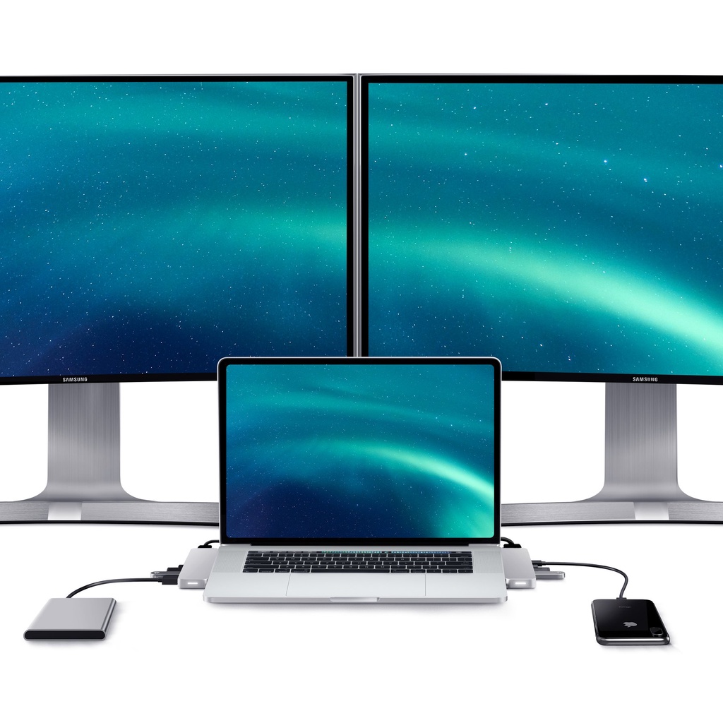 Duo 7-IN-2 có băng thông cực lớn cho 2 cổng USB-C còn gọi là Thunderbolt 3: 40Gbps/100W + 5Gbps/60W, Phiên bản DUO hỗ trợ xuất từ 2 cổng USB-C của Macbook Pro/Air ra 7 cổng: