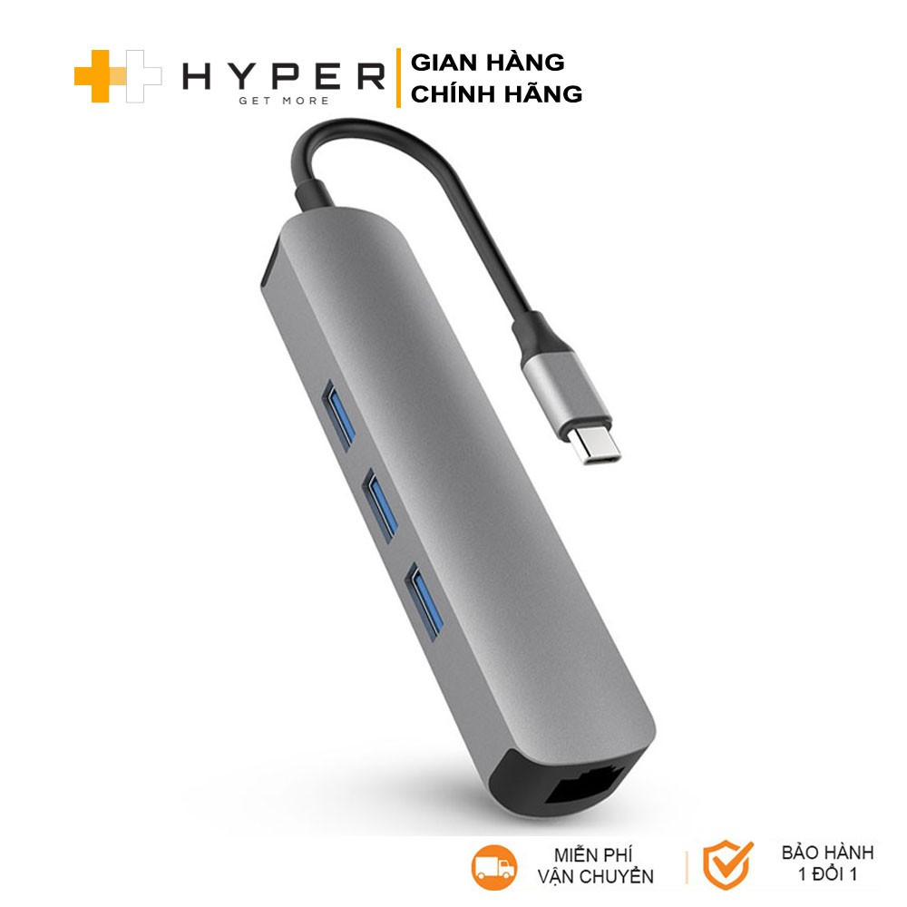 Cổng chuyển HyperDrive 4k HDMI 6-in-1 USB-C Hub cho Macbook, Ultrabook & USB-C Devices - Lan - HD233B - Hàng Chính Hãng