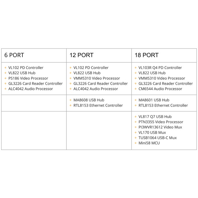 12 cổng nguồn / tốc độ cao như HDMI 4K60hz x 2 , DP 4k60hz, USB-A 10Gbps x 2, USB-A 2.0 x 2, Gigabit Ethernet, Audio Jack 3.5mm TRRS, UHS-II MicroSD, SD 4.0 312MB / s và USB-C Power Delivery 100W