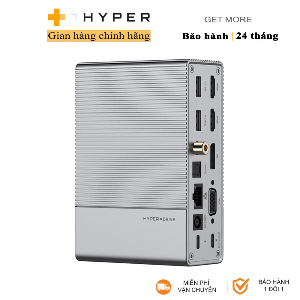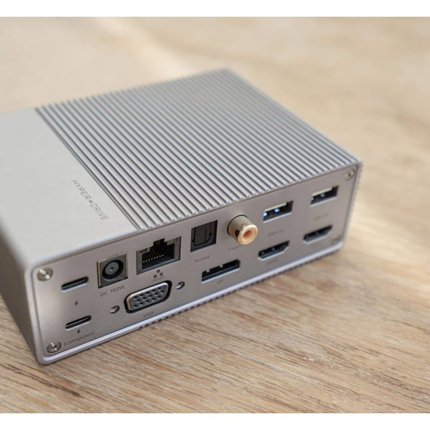 CỔNG CHUYỂN HYPERDRIVE GEN2 18-IN-1 FOR MACBOOK, IPAD PRO 2018-2020, PC & DEVICES (G218)HyperDrive GEN2 18 cổng USB-C Hub là một Trung tâm USB-C thế hệ tiếp theo có thể biến một cổng USB-C duy nhất trên thiết bị chủ / máy tính thành 18 cổng với nguồn/tốc độ cao như HDMI 4K60Hz x 2, DP 4K60Hz, VGA, USB -A 10Gbps x 2, USB-C 10Gbps, USB-A 2.0 x 2, USB-A 3.0, Gigabit Ethernet, Coxial SPDIF, Cáp quang Toslink, Giắc Audio 3,5 mm TRRS, UHS-II MicroSD / SD 4.0 312MB / s, Nguồn điện DC 180W và USB-C 100W