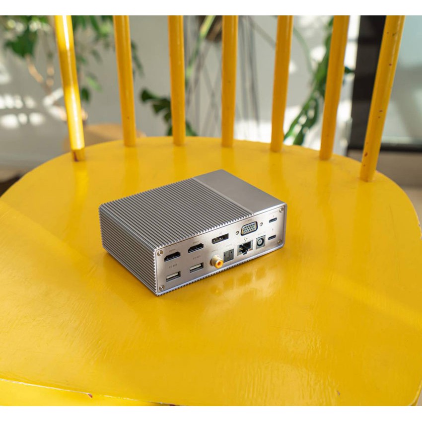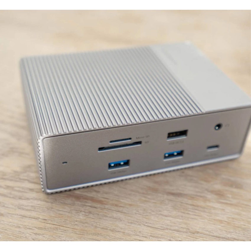 Kết nối với thiết bị chủ / máy tính bằng cáp USB-C sang USB-C công suất 100W / 10Gbps được cung cấp. Hỗ trợ chế độ thay thế DP1.4 và phân phối điện 100W. Công suất PD được điều chỉnh động tùy theo việc sử dụng các giao diện khác, lên đến tối đa 100W khi sử dụng nguồn điện bên ngoài 180W