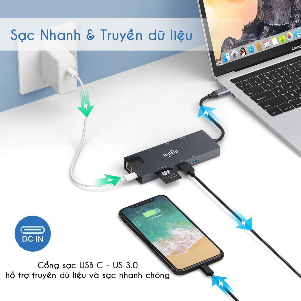 Cổng Chuyển HyperDrive Hub USB Type C 9 Cổng Ikling Ethernet SD Mircro SD VGA UHD HDMI Audio USB3.0 Cho Macbook SamSung