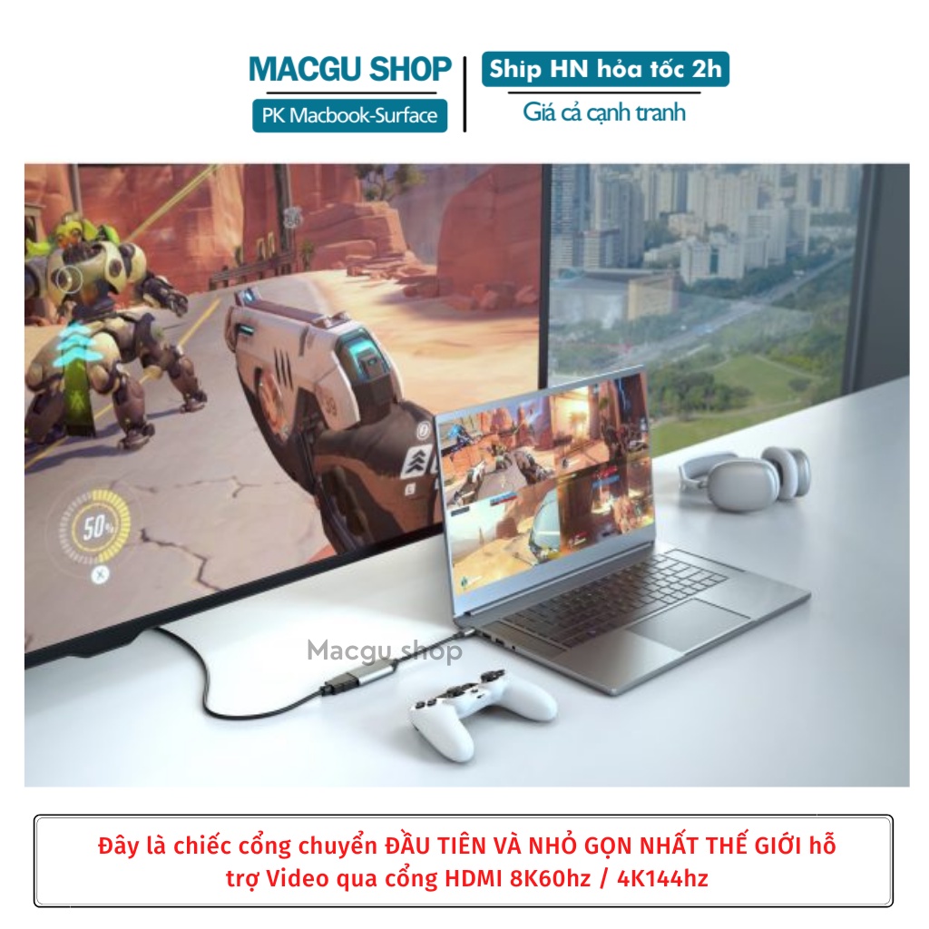Bộ chuyển đổi USB-C đa năng đầu tiên trên thế giới cho đầu ra video HDR 8K 60Hz. Trải nghiệm video 8K 60Hz hoặc 4K 144Hz rõ ràng trong như pha lê trên màn hình HDMI với tốc độ làm mới nhanh hơn và video mượt mà hơn.- PORTS (CỔNG ĐẦU RA):