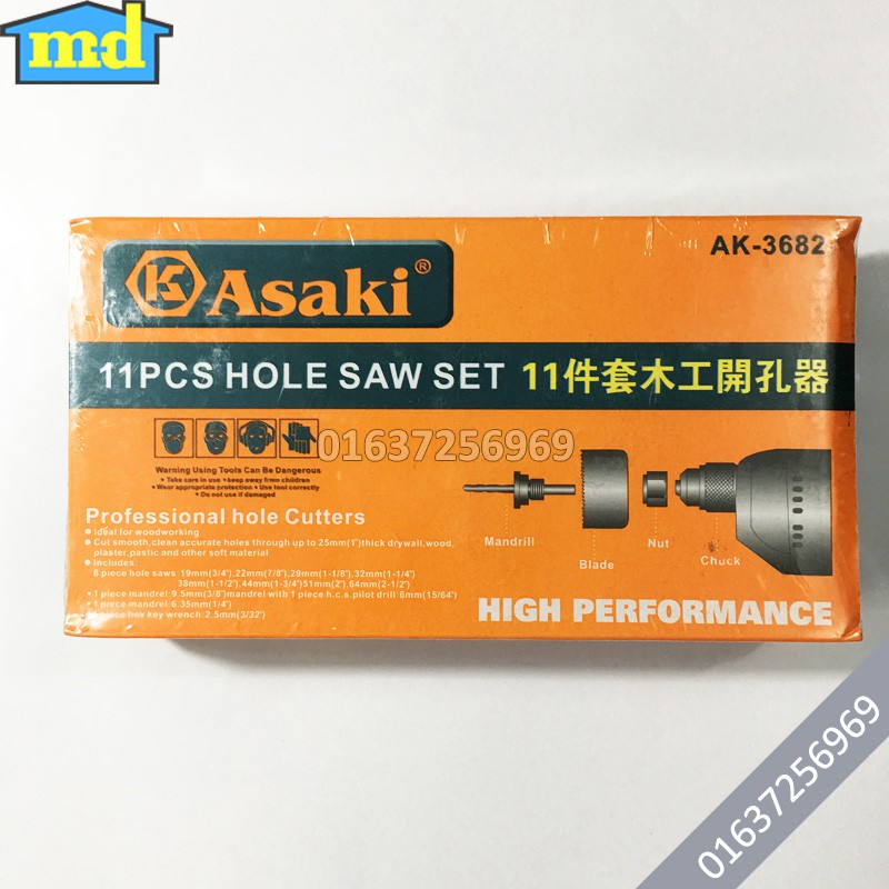 - Bộ công cụ khoét lỗ gỗ và thạch cao Asaki AK-3682 là thiết bị chuyên dùng để khoan khoét lỗ trên bề mặt các loại gỗ,thạch cao,....