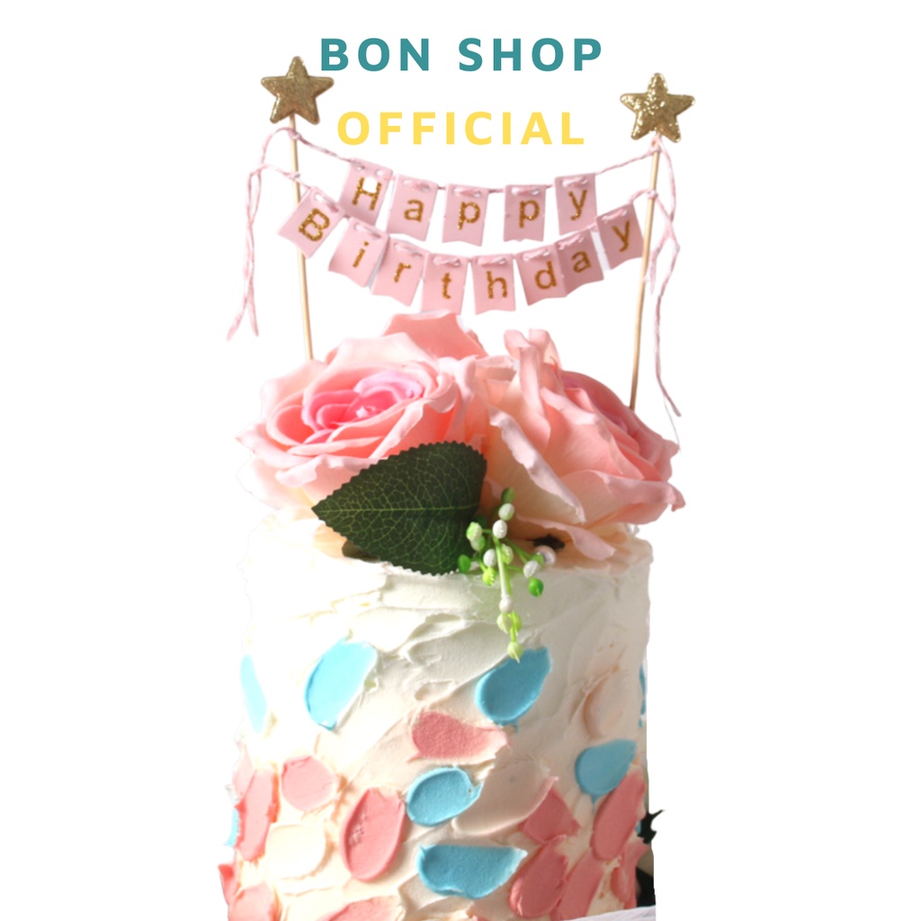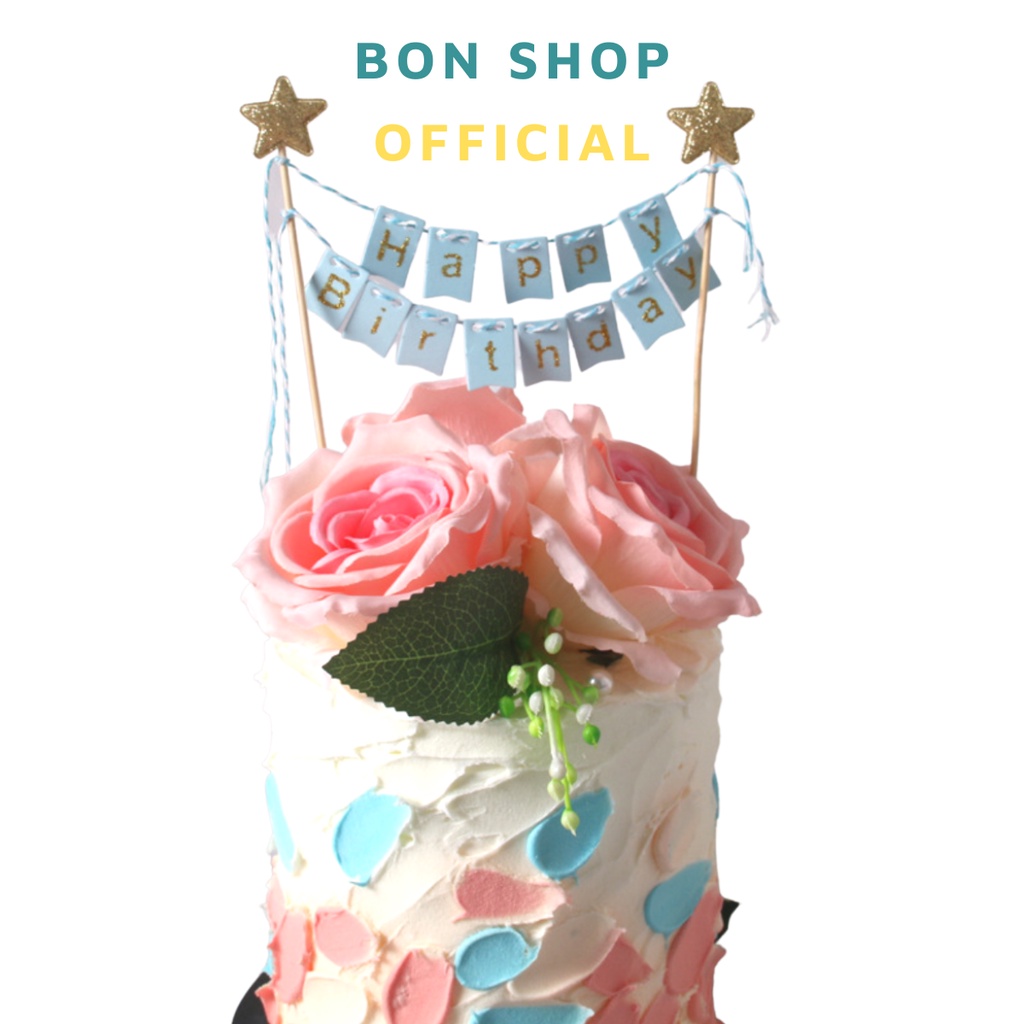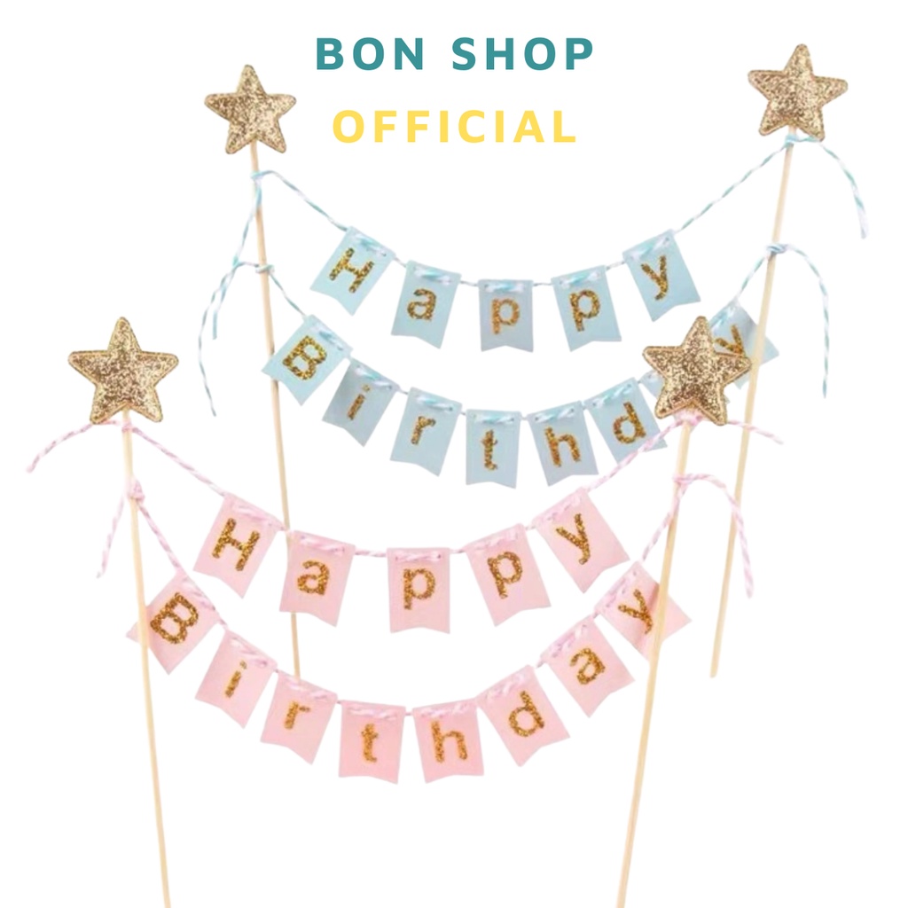 Bon ShopCổng dây cờ chữ HAPPY BIRTHDAY ép kim đính Ngôi Sao nhũ trang trí bánh kem sinh nhật