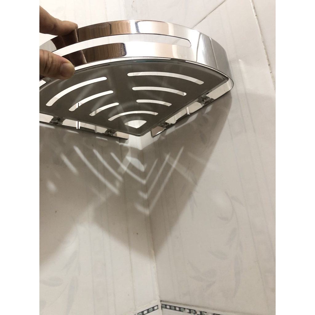 [CÔNG NGHỆ ĐÁNH BÓNG] Kệ Sữa Tắm Dầu Gội Trong Nhà Tắm INOX 304 KG18 KÊ GÓC TẤM 1 tầng, inox 304 sáng bóng chống han rỉ
