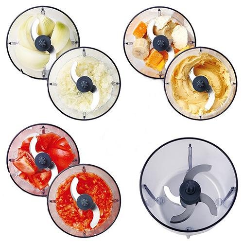 ➡ Thiết kế nhỏ gọn, đơn giản với lưỡi cắt kép, giúp xay nhanh hơn. Thực phẩm sẽ không bị mắc kẹt bên dưới lưỡi cắt như những loại máy xay khác. Lưỡi cắt có thể được lấy ra rất dễ dàng