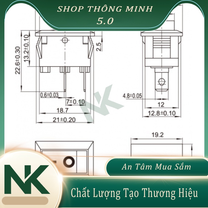 ❤️ Phân Loại: Công Tắc KCD1-101 2P 10A Kích Thước 21x15MM