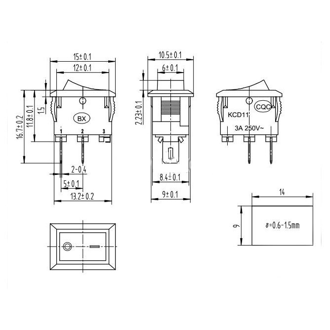 ❤️ Phân Loại 1: Công Tắc KCD1-11 2P (XL601) 3A Kích Thước 15x10MM