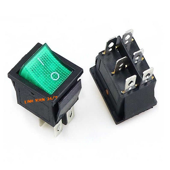 Công tắc bập bênh 6 chân có đèn dùng để chế trong thiết bị máy móc hoặc các thiết bị trong gia đình, công tắc bật tắt nguồn,…