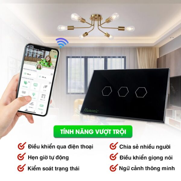 CÔNG TẮC CẢM ỨNG THÔNG MINH HUNONIC WIFI 3 NÚT