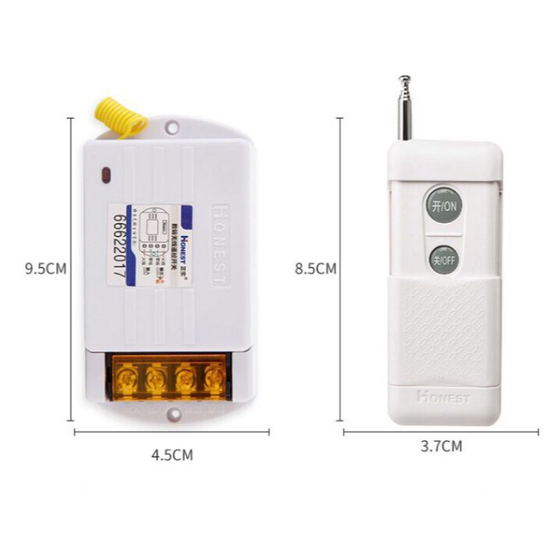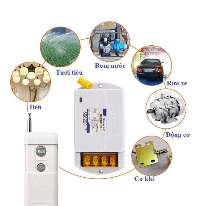 Công tắc điều khiển từ xa công suất lớn Honest HT-6220 công suất 40A chuyên dụng cho thiết bị lớn như máy bơm, bình nước nóng,mô tơ điện 2000wĐây là công tắc điều khiển từ xa chuyên dụng để bật tắt các thiết bị đòi hỏi công suất lớn hoặc cường độ dòng khởi động lớn khi nó có thể chịu tải tới 5000W (30A). Bạn có thể sử dụng công tắc điều khiển từ xa công suất lớn Honest HT-6220 này để bật tắt máy bơm (2000w), bình nước nóng, các ứng dụng motor có dòng khởi động <30A…