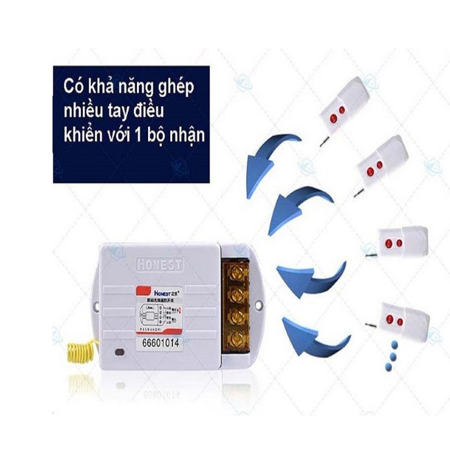 Sản phẩm INPUT 220v AC_ OUTPUT 220v AC 30A * Hãng sản xuất : Honest Mã sản phẩm : HT-6220ZR-1 * Khoảng cách điều khiển từ 100M - 1Km * điều kiện môi trường mở)Loại sóng thu phát : RF 315MHz (có pin đi kèm)