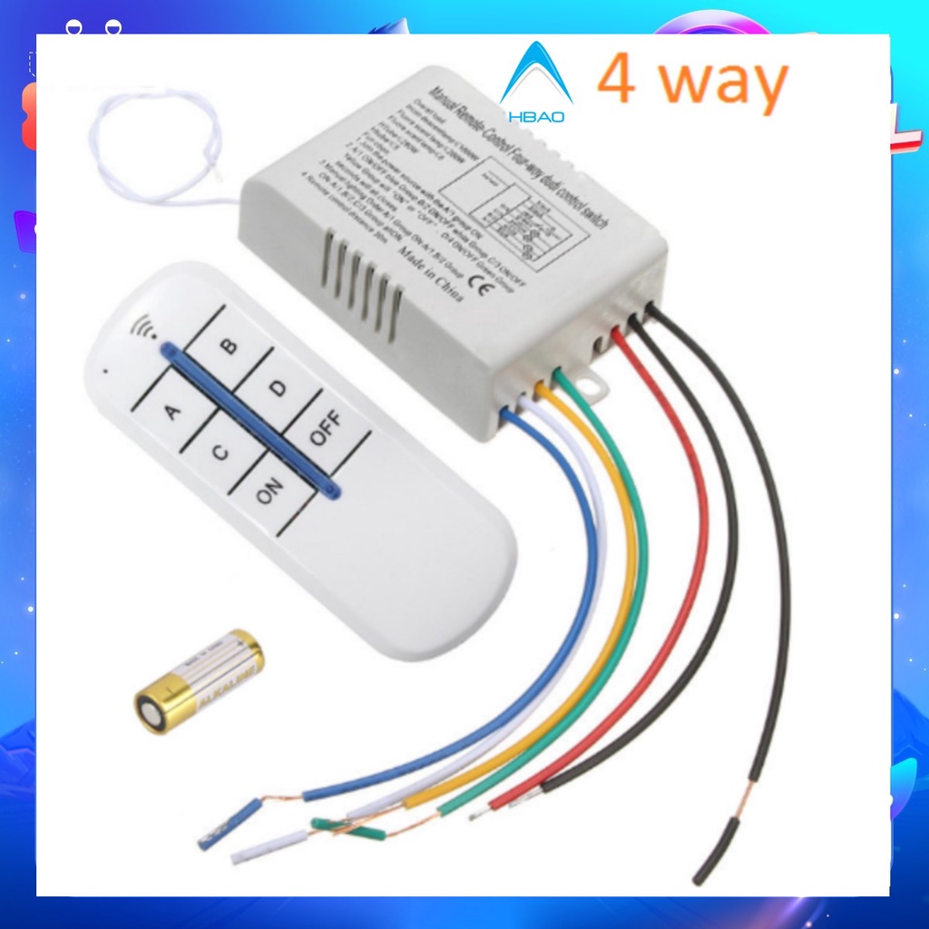 Thiết Bị Điện Gia Dụng > Thiết bị điều khiển từ xa || Công tắc điều khiển từ xa 4 cổng kèm tay điều khiển và pin - 4 kênhCòn hàng