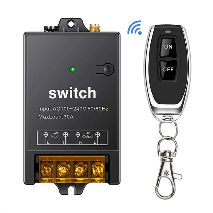 Điều khiển bật/ tắt từ xa bằng sóng vô tuyến rf (radio), có thể điều khiển từ xa xuyên tường và vật cản không ảnh hưởng đến sức khỏe người sử dụng