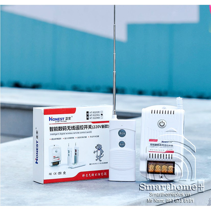Công Tắc Điều Khiển Từ Xa Công Suất Lớn 40A 1Km Honest HT-7220KG (Phiên bản mới 2019).Công tắc điều khiển từ xa Honest sử dụng sóng vô tuyến có tần số 315Mhz để truyền tín hiệu điều khiển từ remote cầm tay. Chính vì vậy nó có khả năng điều khiển xuyên tường ở khoảng cách xa.