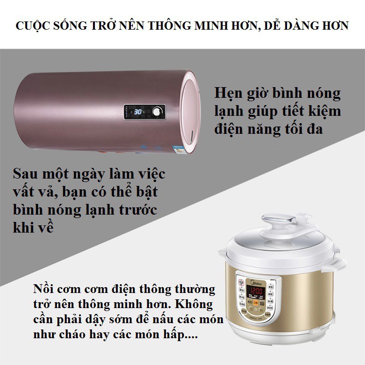 Với công tắc điều khiển từ xa Wifi cuộc sống của bạn sẽ trở nên dễ dàng hơn bao giờ hết. Bạn có thể hẹn giờ nấu ăn mỗi sáng mà bạn không cần phải dậy sớm, hẹn giờ máy bơm nước, tưới câ Hay bạn có thể bật - tắt bình nóng lạnh trước khi đi làm về.
