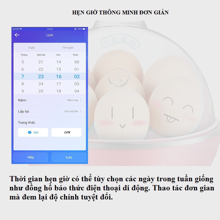 Không cần cài đặt quá phức tạp, thao tác rất đơn giản giống như hẹn giờ báo thức điện thoại di động.
