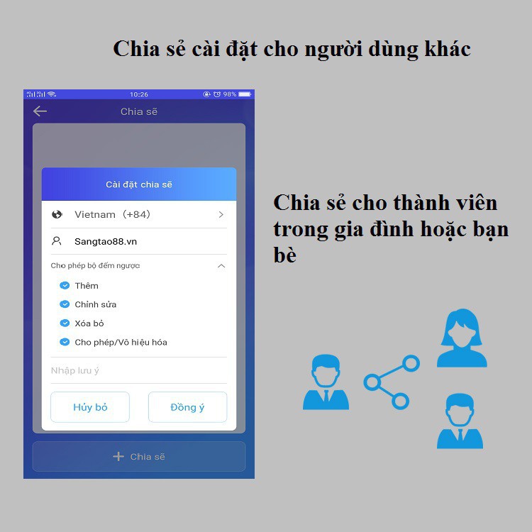 Một trong những tính năng vô cùng thú vị của công tắc điều khiển từ xa Wifi. Đó là bạn có thể chia sẻ cài đặt với thành viên khác trong gia đình hay bạn bè
