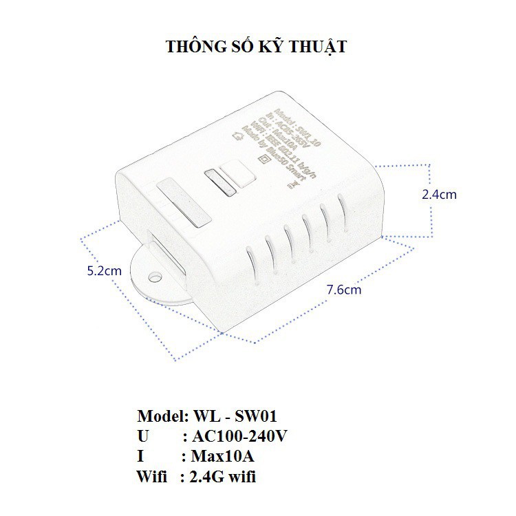 Bạn đang cần một công tắc điện có thể điều khiển từ xa? Bạn đang cần một công tắc điện có thể hẹn giờ thông minh và đơn giản? Bạn đang cần một loại công tắc điện có thể bật tắt luân phiên? Bạn cần một loại công tắc điện có độ bền cao, chất lượng đảm bảo? Nhằm đáp ứng tất cả các tiêu chí trên và còn hơn thế nữa. Hôm nay, CTY CHÚNG TÔI xin được giới thiệu đến bạn sản phẩm công tắc điều khiển từ xa đa năng qua wifi.THÔNG SỐ KỸ THUẬT: