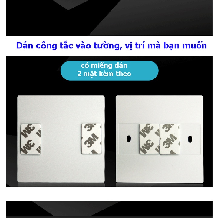 1-Công tắc dán tường có thể lắp trên đế vuông âm tường hoặc dán trên tường bằng băng dính 2 mặt 3M: có tác dụng là bộ phát sóng radio để bộ thu là mạch điều khiển bật tắt đèn