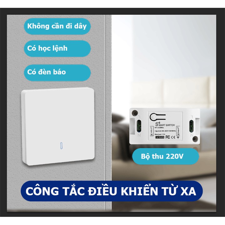 * Với bộ sản phẩm này ta không cần đi dây điện từ mặt công tắc đến vị trí đèn chỉ cần cấp 1 nguồn điện đến vị trí đèn mà ta cần bật tắt