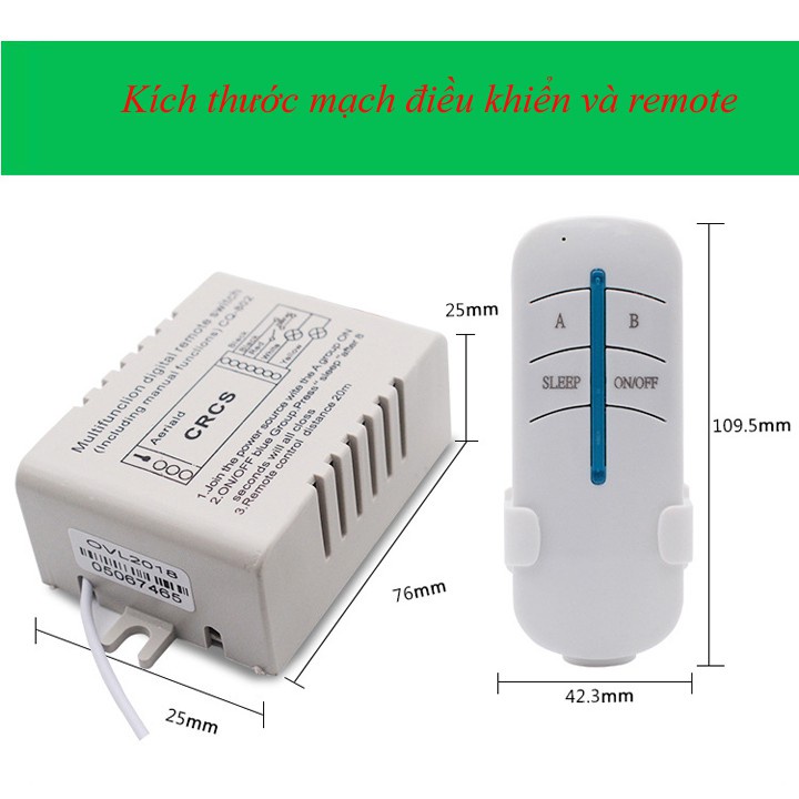 Sản phẩm gồm : mạch điều khiển + remote có pin đi kèm + giá treo remote