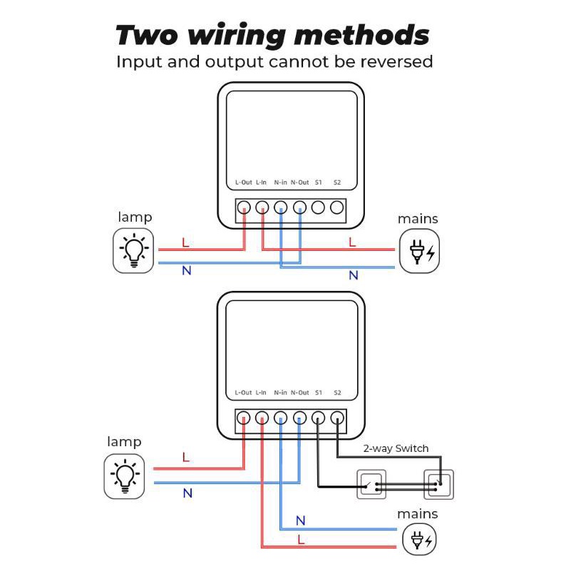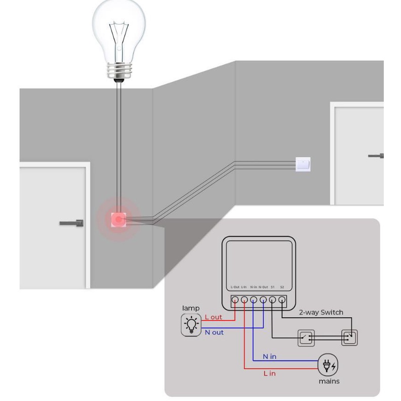 - Công tắc điều khiển từ xa Tuya mini 16A hai chiều dễ dàng lắp đặt với công tắc cầu thang.