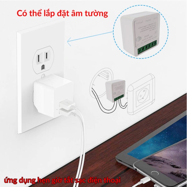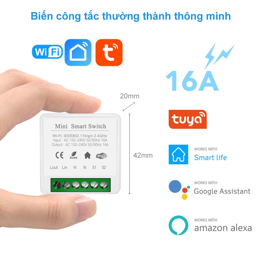 Thiết Bị Điện Gia Dụng > Thiết bị điều khiển từ xa || Công tắc điều khiển từ xa Tuya mini 16A, kết nối wifi, hẹn giờ bật tắt qua điện thoại, lắp được cho công tắc cầu thangCòn hàng
