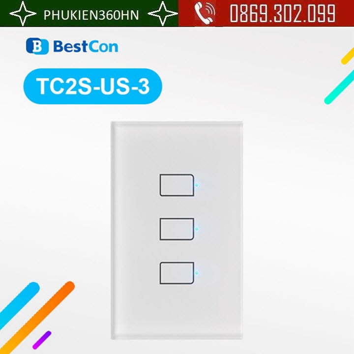 [Mã 155ELSALE giảm 7% đơn 300K] Công Tắc Gắn Tường Thông Minh Broadlink Bestcon Tc2S 3 Gang US Tiêu Chuẩn