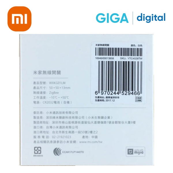 Giga DigitalCông tắc không dây thông minh (dùng với Gateway) Xiaomi Mi Wireless Switch