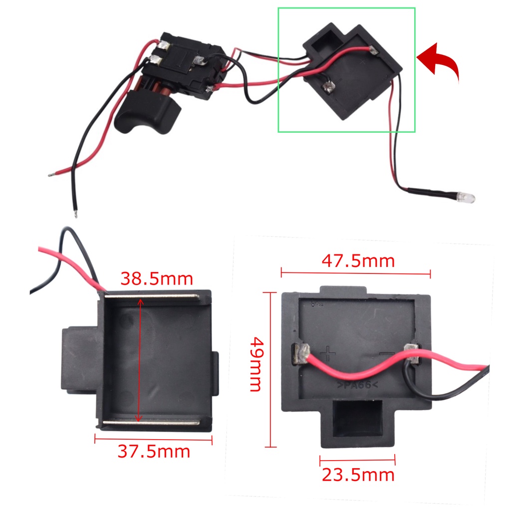 Công tắc máy cưa kiếm 18v - 21v kèm chân gài pin được sử dụng thay thế cho công tắc của các dòng máy cưa kiếm thông dụng trên thị trường hiện nay.Lưu ý khi bảo quản và sử dụng sản phẩm: