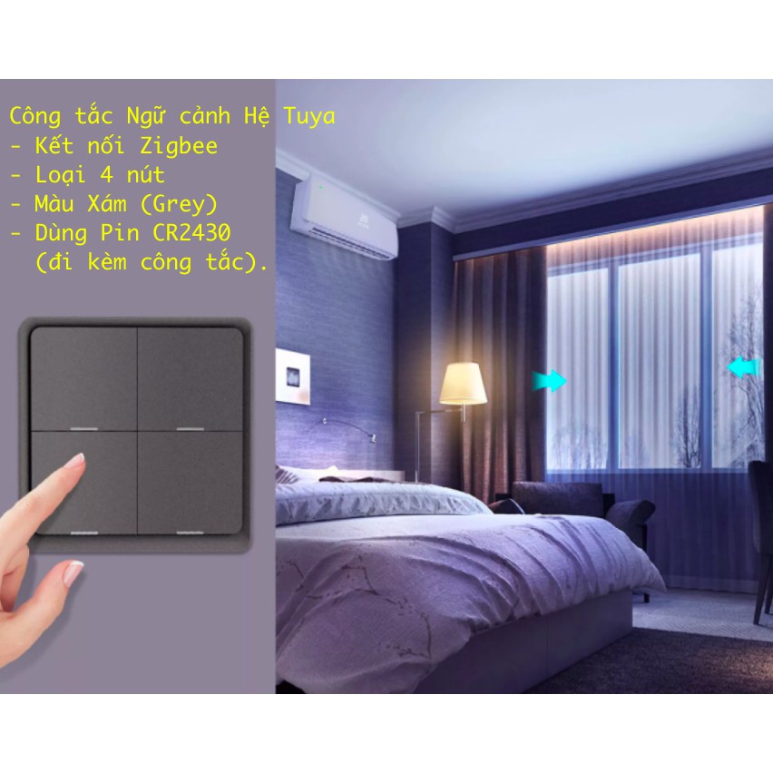 Công tắc ngữ cảnh thông minh loại dán tường, Zigbee, dùng App Smart Life hoặc Tuya