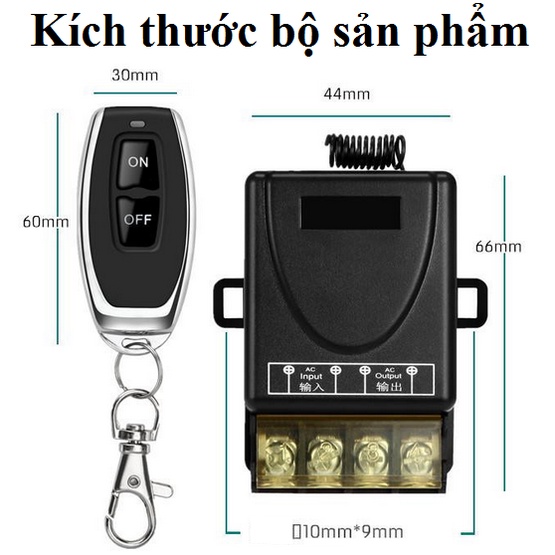 Bộ công tắc điều khiển từ xa công suất cao dùng để điều khiển đóng ngắt thiết bị điện từ xa như: đèn, quạt, máy bơm nước, với công suất tải tối đa 3000W hoặc có dòng khởi động tối đa 30ASản phẩm có 2 loại: loại dùng điện 100~220V và loại dùng điện 12~80V