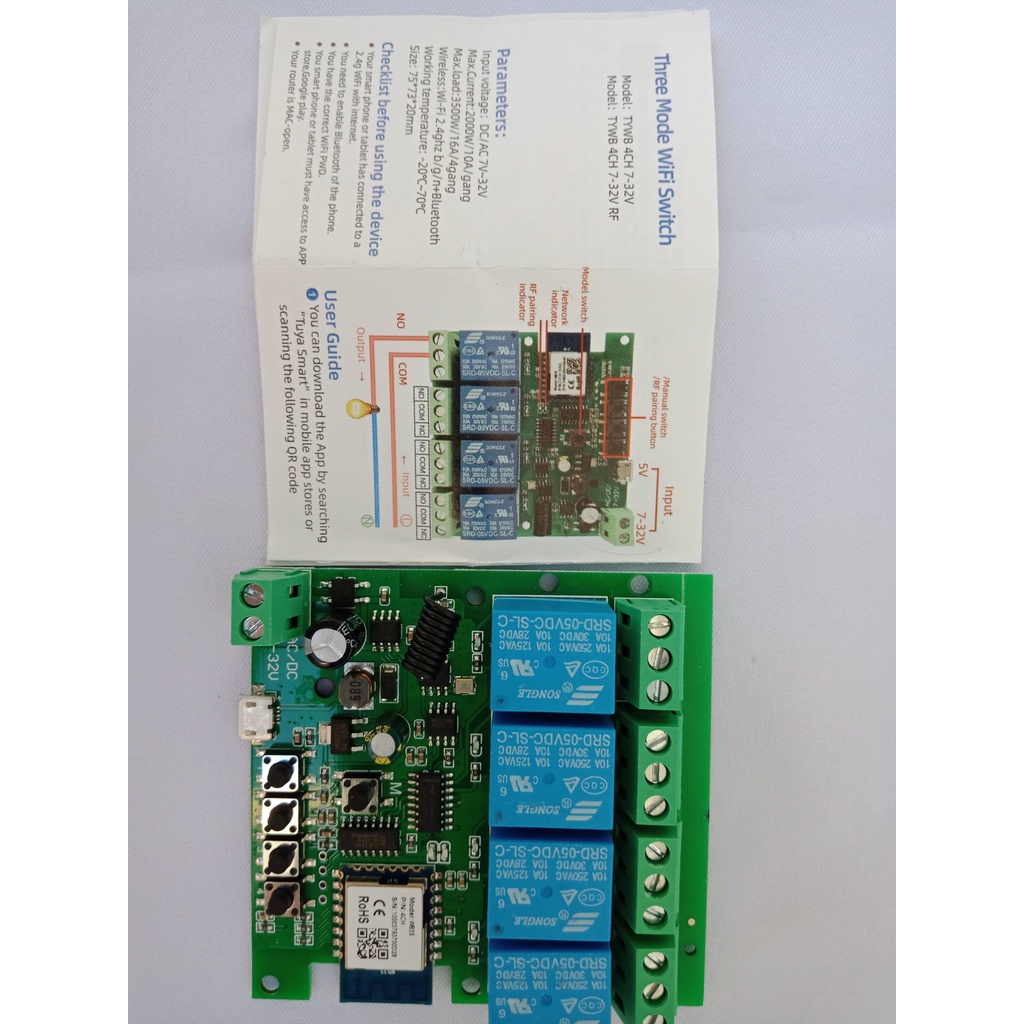 Công tắc thông minh 4 kênh 5-32VDC Wi-Fi app Tuya Smartlife, 433Mhz điều khiển từ xa cho nhà thông minh.Shop cũng có bo mạch dùng App Ewelink. Các bạn tìm sản phẩm trên shop này.