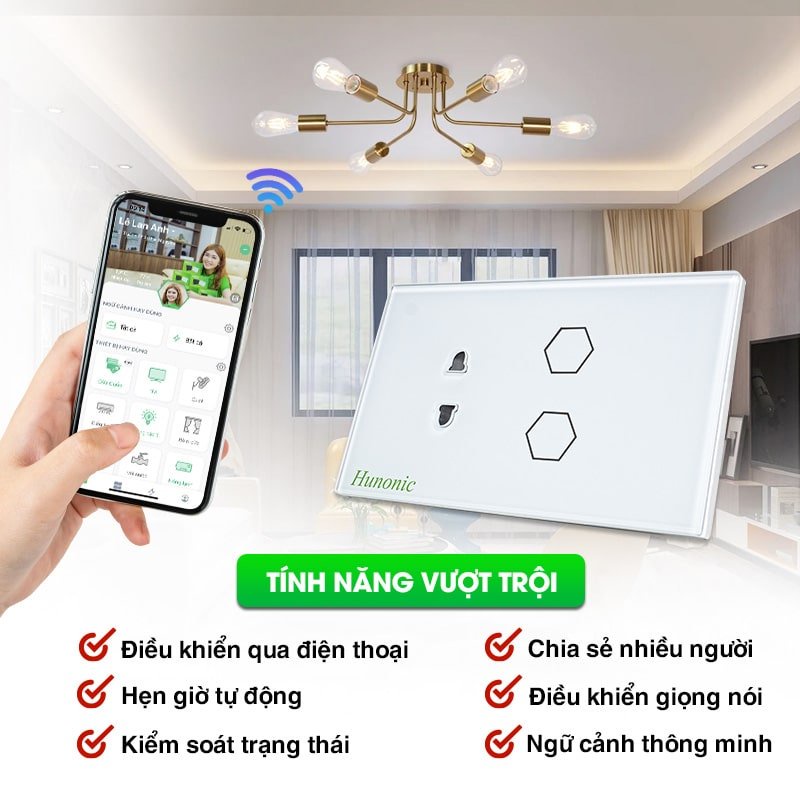 CÔNG TẮC THÔNG MINH HUNONIC KÈM Ổ CẮM WIFI