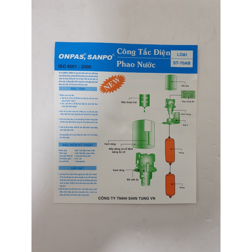Ưu điểm sản phẩm :Phao điện ONPAS Model ST-70AB 15