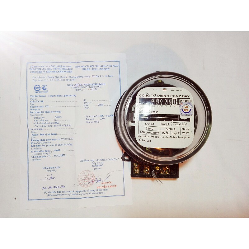 Công tơ điện 1 pha Emic CV140*Các loại đồng hồ điện 1 pha của EMIC Việt nam. Có các dòng điện 5(20)A, 10(40)A, 20(80)A, 40(120A). Dây chuyền sản xuất, công nghệ châu âu. Sản phẩm được kiểm định tại Trung tâm Thí Nghiệm Điện 2. Cung cấp bản photo có số seri của đồng hồ (vì 8 cái chỉ có 1 bản chính).