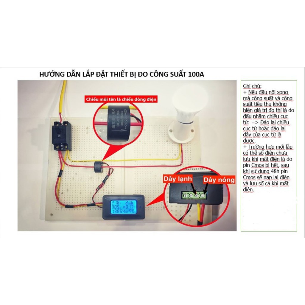 +Sau khi lắp đặt mà chỉ số công suất và công suất tiêu thụ không hiện thì là do đấu nhầm chiều cục từ = > Chỉ cần đảo lại chiều cục từ hoặc đổi vị trí của dây đỏ và đen của cục từ là được