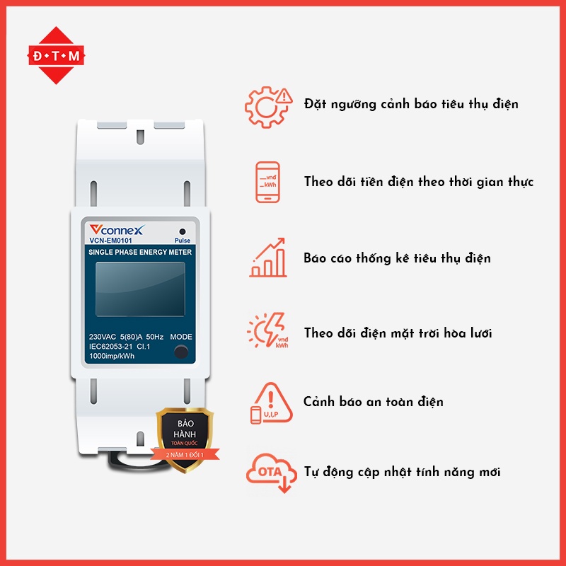 🏅Tính năng công tơ điện tử wifi thông minh 1 pha Vconnex: