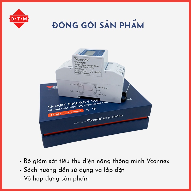 Công Tơ Điện Tử Wifi Thông Minh 1 Pha - Bộ Giám Sát Tiêu Thụ Điện Năng Thông Minh Vconnex