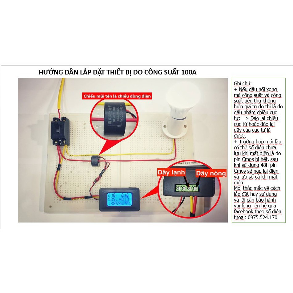 Giới thiệu Công tơ - đồng hồ điện tử 6 thông số đo công suất, cường độ (100A)