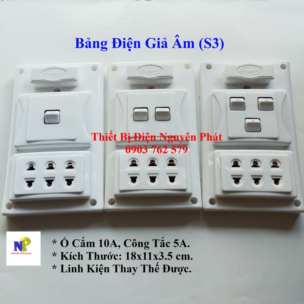 Thiết Bị Điện Gia Dụng > Mạch điện & Phụ tùng > Ổ cắm điện & Dây nối || [CONIP] Bảng Điện (Taplo) Giả Âm (S3)Còn hàng
