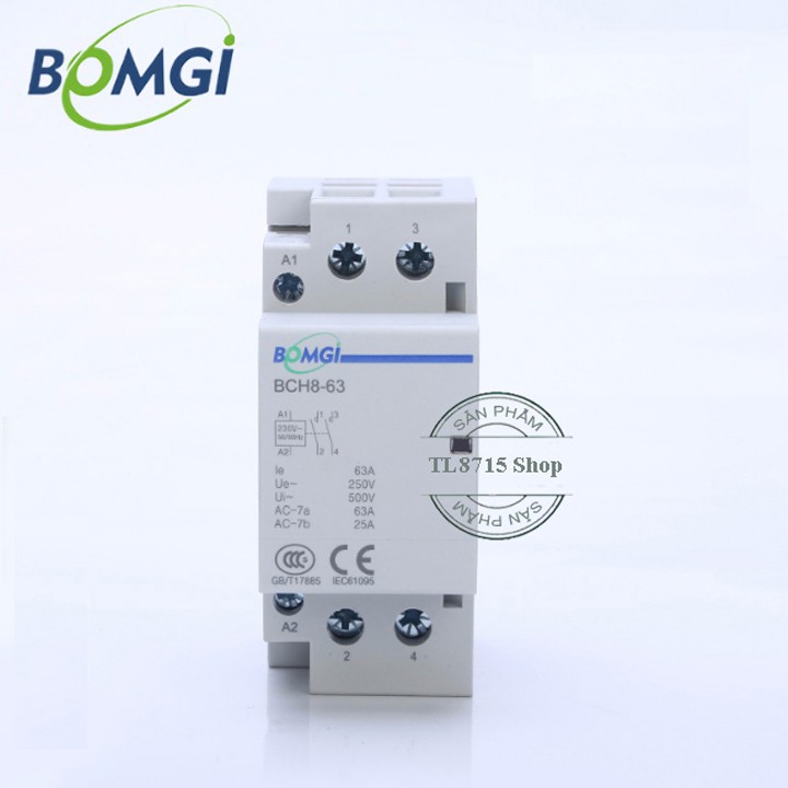 Contactor 63A/220V 2NO BOMGI mini làm tiếp điểm phụ cho công tắc hẹn giờ, công tắc điều khiển từ xa, công tắc wifi